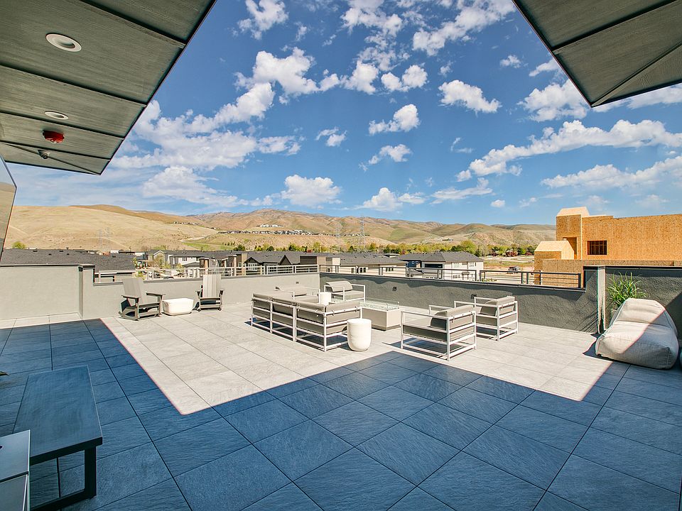 Private balconyStunning foothill viewsAbundant windowsLofty beamed ceilingsRooftop deck