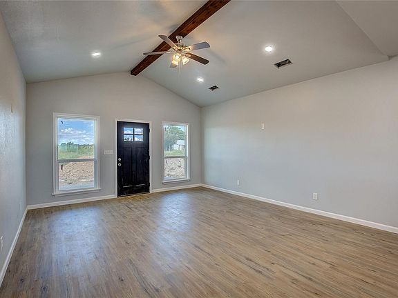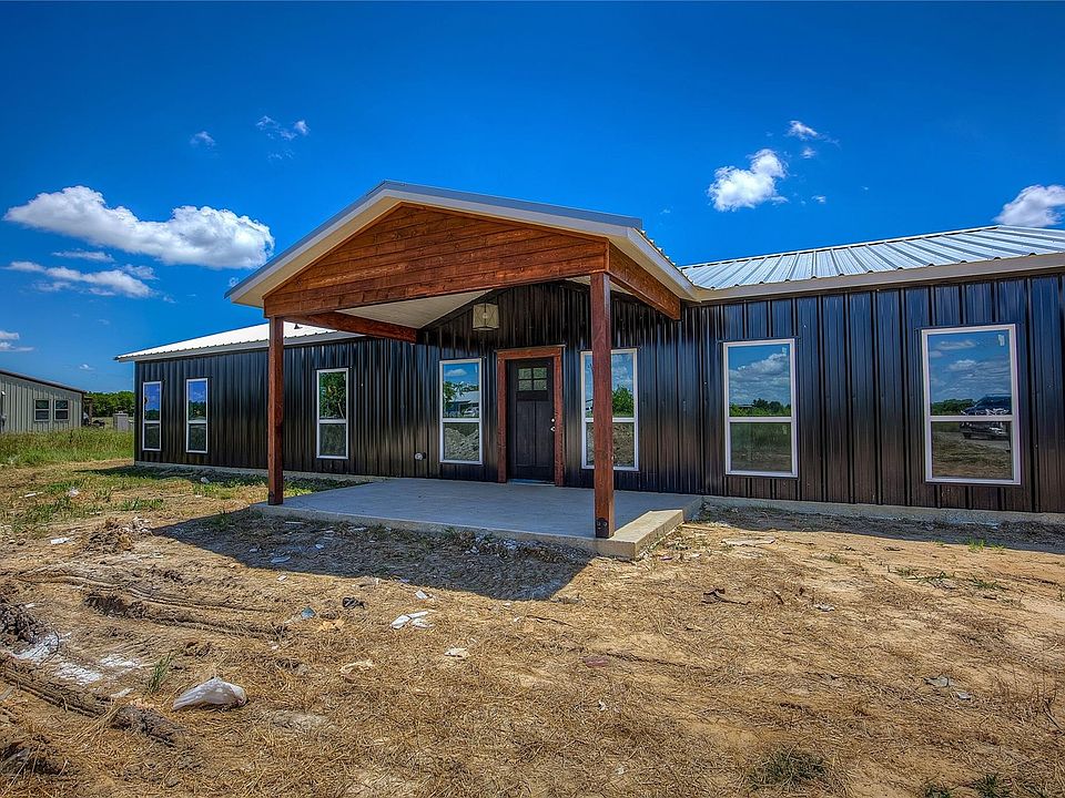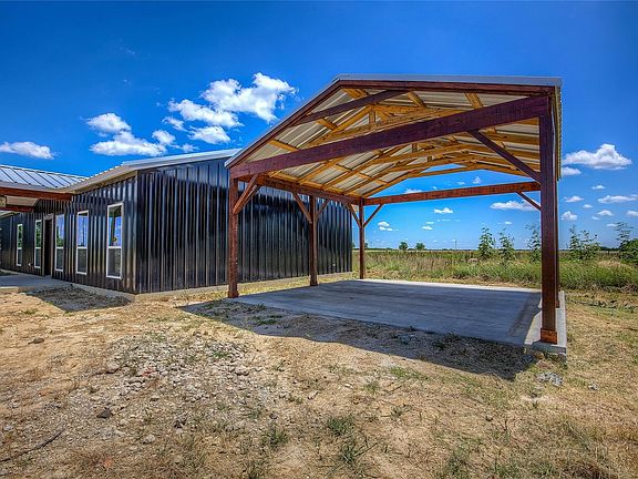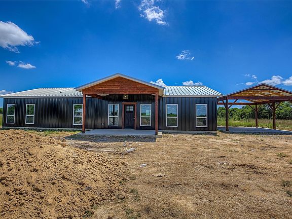 MOTIVATED SELLER!!! Seller will carry note with as little as 25k down!!!! Brand new black and silver barndominium with 1890 square ft on 1.2 acres. 4 bedrooms and 2 bathrooms. The large, custom kitchen island has the dishwasher and sink in it. Granite countertops, garbage disposal, stainless steel Whirlpool appliances including range and over-the-range microwave. Enormous walk-in pantry. Custom made cabinets. Open concept and split bedroom floor plan. Vaulted ceiling with a wood beam in the living room. Large master bedroom with walk in closet. Ensuite bath features a beautiful, tiled corner shower with wood trim, soaking tub and dual sink vanity. Vinyl plank floors and ceiling fans throughout. All electric house, individual water meter and aerobic septic system. Covered carport for two vehicles. Located outside city limits with no restrictions. Wide open views in a rural setting. Perfect for rural living. Close to Greenville and one hour to Dallas. Yard work will be completed soon!