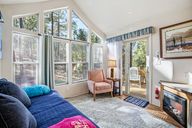 Electric fireplaceWood stoveWater standpipePeaceful wooded viewsCathedral wall of windowsBack deckSurrounded by tall pines