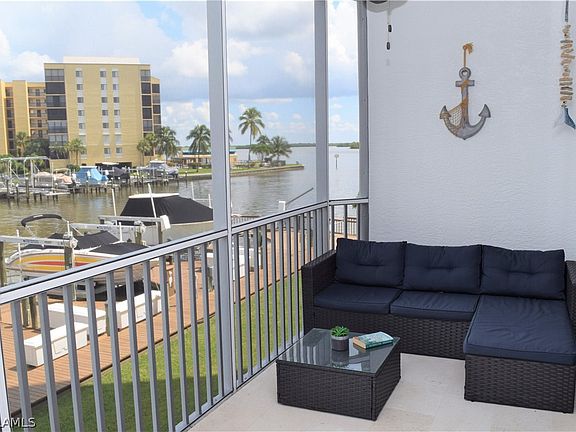 Your chance to own in popular Casa Marina community with main channel AND Estero Bay views. Enjoy the boat parade and watch for manatees and dolphins from the travertine-tiled and screened lanai! Turnkey upscale furnished 2BR/2BA. Nearly 1200 sq. ft. living area. 3-panel sliding doors showcase water views! Open concept. 24" porcelain tile flooring throughout. Beautiful kitchen w/breakfast bar: quartz countertops; tiled backsplash; SS sink; Samsung & Haier SS appliances. Spacious owner's suite with direct lanai access, walk-in closet and en-suite bath. Both baths updated: floating vanity with integrated sink; tiled backsplash; shower (frameless glass doors; tiled floor). Laundry (Maytag W/D) conveniently located on lanai. 2021 A/C unit and handler. Ring doorbell. Smart thermostat. Casa Marina is located at the quiet south end of Fort Myers Beach. Amenities include community pool, deeded beach access, fishing pier and Bay Beach Commons. 2 pets allowed. Quick beach access, shopping, restaurants and public marina! Boat docks may be available for lease/purchase at Casa Marina and Bay Beach areas. Great rental potential, assumable rentals in place. 2 week rentals allowed.