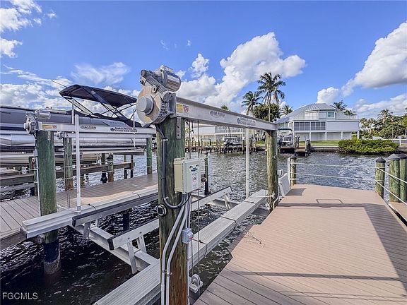 2 DOCKS COMBINED INTO ONE! This combined dock is part of the Casa Marina Yacht Club association and is located behind building 4 at Casa Marina (4341 Bay Beach Lane), on the main channel in the Bay Beach area. The dock has an approximate 14,000 lift to accommodate up to a 36' long and 10' wide boat. (Buyer to verify lift capacity and boat size fit). Composite decking walkaround dock with front extension. Aluminum lift walkway and hinged dock platforms provide ease of access to your boat. Per seller, docks can be split back into separate docks. Casa Marina's convenient location means you could be boating in the open waters of the Gulf of Mexico in approximately 15 minutes or travel Estero Bay to our fun north end waterfront restaurants, bars, etc. Estero Bay fishing is only minutes away. Water and electric included. 2024 annual Casa Marina Yacht Club association fee: $1000.00 (including taxes, water and electric). Sales application fee: $150. Must be an owner on Bay Beach Lane to purchase. Casa Marina unit 644 (4341 Bay Beach Lane, located in front of dock) is available for optional purchase.