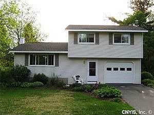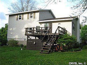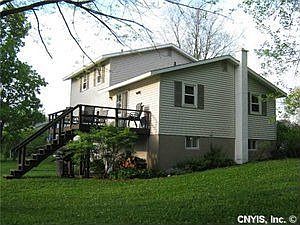 This handsome vinyl-sided and shuttered 3 bedroom split-level is in a quiet country setting just outside the Village edge. On 1.4 acres of mature trees and choice landscaping, and featuring knockout newer stainless steel equipped kitchen, refinished hardwoods, den or office, family room w/wood stove and laundry area on lower walkout level. Deck off kitchen overlooks the deep treed & private rear yard wtih tool shed. In mint condition w/numerous newer updates including roof, furnace, central air, garage door & resurfacecd chimney. 2 minutes to Marcellus Village & Schools.