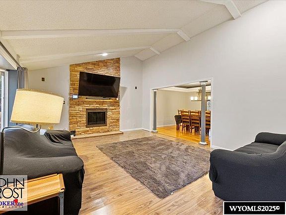 This beautifully maintained four-level home on Sunrise Drive blends comfort, functionality, and style. The exterior features fresh paint and great curb appeal, while the interior showcases a spacious, thoughtfully designed layout. The large kitchen is truly a centerpiece- featuring commercial-grade stainless steel appliances, two sinks, abundant counter space, and a bright breakfast nook that flows naturally into the formal dining and family areas. The primary suite offers a peaceful retreat with a luxurious five-piece master bath and a private laundry area, complemented by a second laundry room on the lower level for added convenience. The basement is perfect for entertaining or relaxing, complete with a drop-down projection screen that tucks away neatly when not in use. Enjoy the Wyoming evenings on the expansive backyard deck, ideal for gatherings, grilling, or simply soaking in the views. With its well-kept condition, versatile living spaces, and premium finishes throughout, this Sunrise Drive home truly stands out.