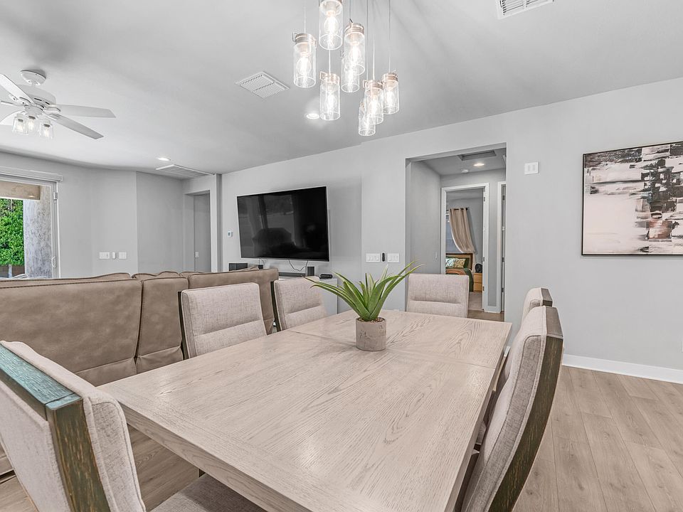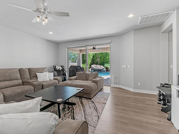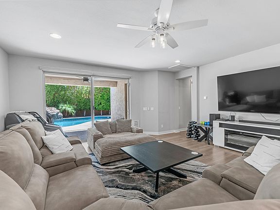 Step into the updated kitchen, complete with quartz countertops, sleek cabinetry, and modern finishes—perfect for entertaining or everyday living. The wood-look tile flooring throughout adds warmth and durability, while generous closet space offers practical storage throughout the home.Step outside and fall in love with the sparkling pool, surrounded by travertine pavers and mature ficus trees added for privacy and a resort-style feel Whether you're lounging poolside or enjoying the peaceful setting, this backyard is your private retreat.