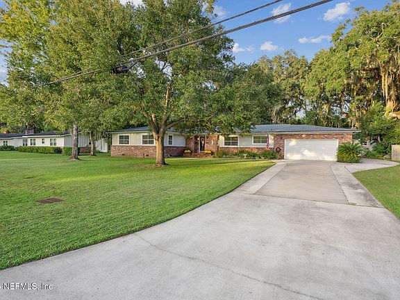 Welcome to this wonderful 3-bedroom, 2-bathroom Ortega Forest home offering 2,245 square feet of inviting living space, nestled on a beautifully private, park-like lot of over half an acre. Built in 1956, this  property combines timeless charm with thoughtful updates and plenty of room to grow — including space for a future pool. Inside, a welcoming foyer leads to a gracious formal living room with a wood-burning fireplace and lovely natural light. The dining room sits adjacent to a nicely equipped kitchen that opens to a spacious Florida room — the perfect place to relax and enjoy picturesque views of the patio and private backyard. Gorgeous Red Oak hardwood floors run throughout much of the home, adding warmth and character. Two generous guest bedrooms share a classic hall bath, while the owner's suite features a renovated bathroom and a large walk-in closet. The attached 2-car garage offers flexible potential  easily enclosed or repurposed into a fabulous fourth bedroom or expanded owner's retreat. Car enthusiasts, hobbyists, or those seeking extra workspace will love the impressive 1,000-square-foot, 3-bay detached garage (built in 2012), complete with a 300-square-foot conditioned office, attic storage, 240-volt service, a 60-gallon air compressor with custom-built shop air manifold, and reinforced concrete ready for a 2-post car lift. A separate 12' x 16' shed provides the perfect spot for lawn equipment and additional storage. With its prime Ortega Forest location, beautiful setting, and unmatched versatility, this property offers a rare blend of comfort, privacy, and potential ready to be your next forever home!