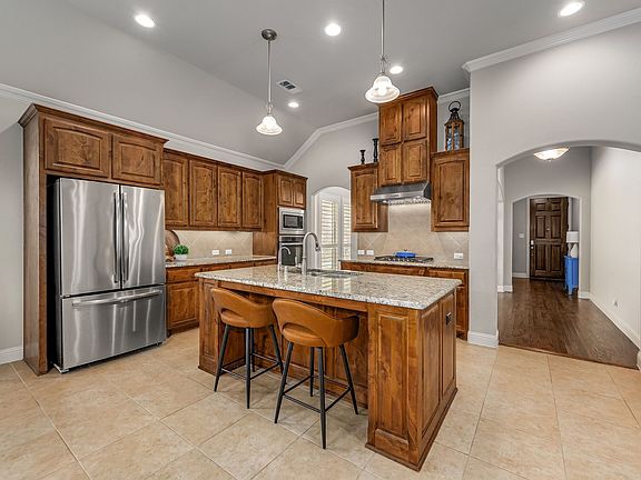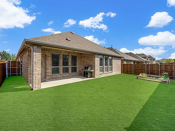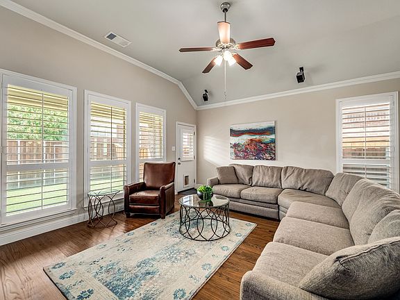 Perfectly situated in the heart of Carrollton, this beautifully maintained single-story home combines thoughtful design with unbeatable convenience. Just minutes from major commuter highways, premier shopping, dining, and entertainment, this property offers an exceptional lifestyle in a prime location. Inside, a warm and inviting foyer with hardwood floors, pendant lighting, and arched doorways sets the tone. A versatile front bedroom with hardwood floors and plantation shutters makes an ideal study or guest space. Elegant hardwood floors continue into the formal dining area, perfect for entertaining. The kitchen is a standout with granite countertops, a gas cooktop, built-in oven and microwave, abundant cabinetry, a walk-in pantry, and a functional island with breakfast bar. It seamlessly opens to a sunny breakfast nook and the spacious living room, featuring hardwood floors, plantation shutters, a ceiling fan, and built-in speakers, ideal for both everyday living and hosting gatherings. The primary suite is generously sized and offers serene backyard views. The ensuite fully updated bath boasts dual vanities, a soaking tub, a separate glass-enclosed shower, and his-and-hers walk-in closets. Additional bedrooms offer comfortable layouts, ample storage, and plantation shutters. Step outside to a covered patio overlooking a grassy yard to enjoy the outdoors. Recent updates include a replaced roof, garage door, and carpet. Neighborhood amenities include scenic greenbelt trails. This home’s smart floorplan, luxurious primary bath, and unbeatable proximity to Carrollton’s best attractions make it a true gem.