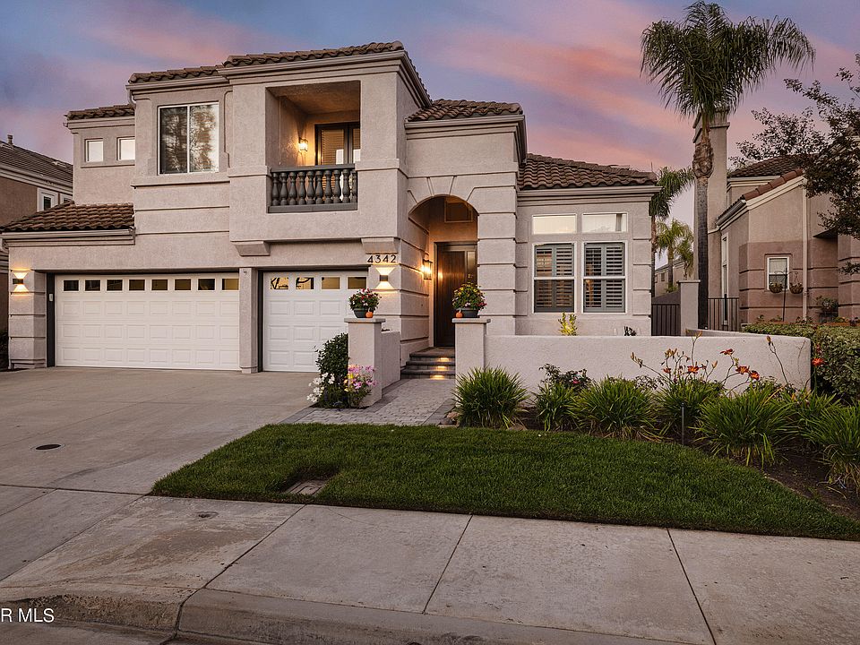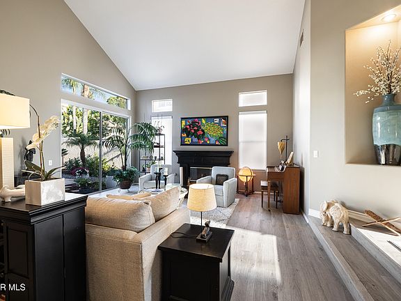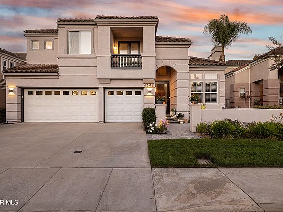 Pride of ownership radiates from this stunning 5-bedroom, 3.5-bath home located in a highly desirable area of Moorpark. Upon entering through the grand wooden door, you are welcomed by the sight of vaulted ceilings in the formal living room and a spacious slider that opens to a meticulously landscaped backyard. Passing the spiral staircase, you'll discover a formal dining room complete with a wet bar, leading into a chef's kitchen that flows into the family room. The downstairs also includes a private bedroom with an attached bathroom. On the upper level, you'll find three more bedrooms located at the far end of the house, accompanied by a dual vanity bathroom. Down the hall, the laundry room has been stylishly decorated with light pink and gold accents. The primary suite, located at the opposite end, serves as a peaceful retreat, complete with an attached balcony. The bathroom has been recently updated, featuring a standalone tub and a spacious shower adorned with beautiful iridescent tiles and radiant gold fixtures. The backyard is surrounded by tall palm trees and lush landscaping, creating the ultimate oasis. It also boasts an oversized patio complete with a built-in barbecue, ideal for enjoying outdoor dining experiences. The home is close to schools, shopping, parks, recreational areas, and dining. Don't miss the opportunity to make this incredible property your own!