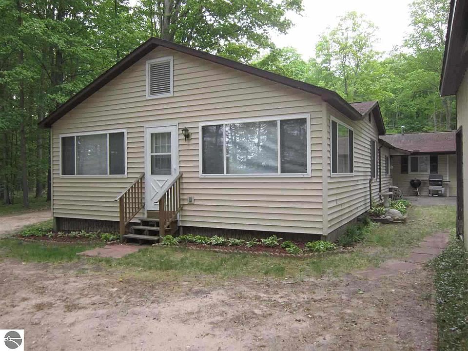 If you're looking to get a house on the water of a quality all-sports lake in Northern Michigan without breaking the bank, this is your opportunity! For under $200,000 you get a 3BR/2BA home with nearly 1300 sq.ft., a 3-seasons room, attached garage, 24x32 pole barn and 33' of private frontage on Duck Lake! This well-maintained, neat-and-clean home features main level living with 2 living areas, a large kitchen with a pantry, a flexible dining space, a master suite with a 3/4 bath and his-and-hers walk-in closets, and a huge 3-seasons room. The attached garage features doors on either side for drive-thru convenience. Storage space galore is yours in the 24x32 pole barn, the perfect place for off-season boat storage or a workshop. This property features a west-facing shoreline for sunset views.