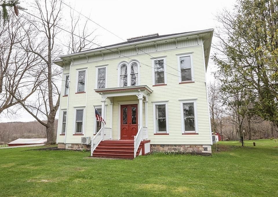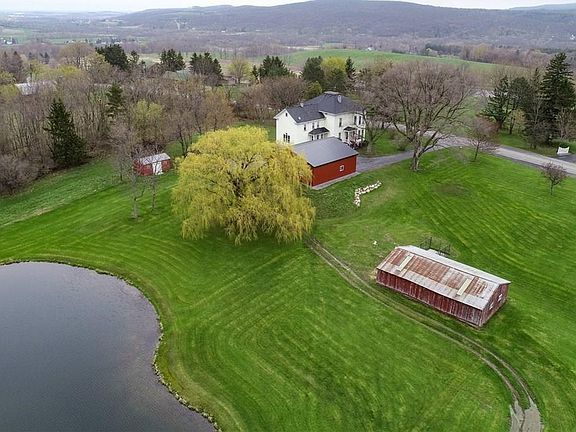 This stately home built in 1866 boasts 3800sf ( per sellers actual measurements ) of living space and is situated on approx. 10 acres of Land including a 3/4 acre Pond and wooded area's. The home offers an impressive Foyer with curved Stairway flanked by two large Formal Living Areas. There is a Dining Room off this area that is currently used as a casual Sitting / TV area. The Kitchen offers abundant Cabinet and Counter Space and is adjoined by a "room with a view" of the Pond and Acreage. There is also a full bath on this level. The entire main floor offers 10 1/2 ft ceilings. The Second floor offers 5 BR and a full bath, plus a "roughed in" full bath. The exterior features a 40x40 Detached 4+ Car Garage/Pole Barn, 12x20 Shed with electric and 26x46 Barn. Many recent improvements including a new tear off roof in 2015.
