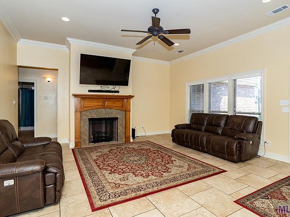 This beautiful home in Sugar Mill Plantation features 3 bedrooms, 2 bathrooms and has a nice open floorplan. The interior has been freshly repainted with neutral colors providing a blank slate for your personal touch. The spacious kitchen features slab granite countertops with a beautiful backsplash, stainless steel appliances, an electric stove (gas connections available), custom built cypress cabinets, an island, and an appliance nook with plenty of plugs to keep the clutter out of sight. The large living room includes crown molding, a gas log fireplace, recessed lighting, porcelain tile floors and plenty of natural light from the windows overlooking the fully fenced backyard. The primary bedroom includes a double boxed ceiling with crown molding, huge walk-in closet with built-in shelving, an ensuite bath with two separate granite top vanity areas, a separate shower, and a jetted tub. All the bedrooms have new vinyl plank flooring, so there is no carpet in the whole house! There is also a convenient computer nook or desk area to keep things organized. The roof was replaced in October 2023. The backyard is private and ready for entertaining family and friends. Located in the highly desirable Brusly school district and convenient to shopping and dining. It’s move in ready so make an appointment for your private showing!