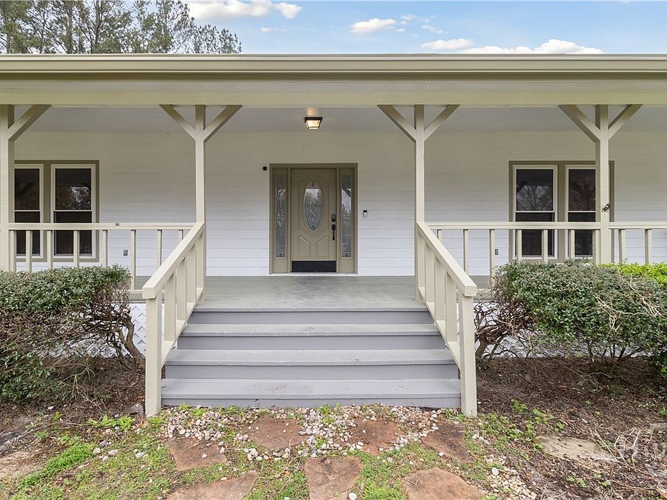 Appraisal at 535K - Instant Equity! Fully Renovated Mini Farm / Horse Property minutes from Hyundai! Situated on acreage this property offers horse pastures, stables, tack house, and hay storage! Full Solar System for low-cost or off-grid living! The massive front porch welcomes you into the large foyer and oversized living room with a fireplace, vaulted ceilings and impressive wood beams! The open floorplan flows into the dining room that can accommodate 12+ guests. The kitchen is fully upgraded with new cabinetry, appliances and hidden extras everywhere! The back room could be a beautiful office or nicely sized 5th bedroom with a walk-in closet perfect for clothes or a huge extra pantry. 3+ large guest bedrooms run down the main hall along with a fully redone guest bath. The main bedroom is twice the standard size and has a large ensuite with walk-in shower, marble vanity, and a massive walk-in closet. The backyard offers a porch, pre-lit gazebo, firepit and views of the pond!