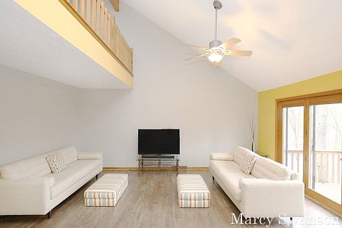 Stunning contemporary condo with rare creek frontage overlooking Buck Creek Nature Preserve. Open floor plan with cathedral ceilings. Kitchen offers roomy pantry, large island with snack bar, and stainless steel appliances. Step out onto the deck just off the living room overlooking creek and woods. Main floor bedroom has full closet with walkthrough to a full bath. Upstairs there is a big loft bedroom with huge walk in closet and reading nook. Downstairs you will find a rec room as well as a 3rd bedroom with walk in closet and an additional full bath. Potential 4th bedroom or family room with a door to a 2nd deck. Enjoy new carpet. Appliances included.
