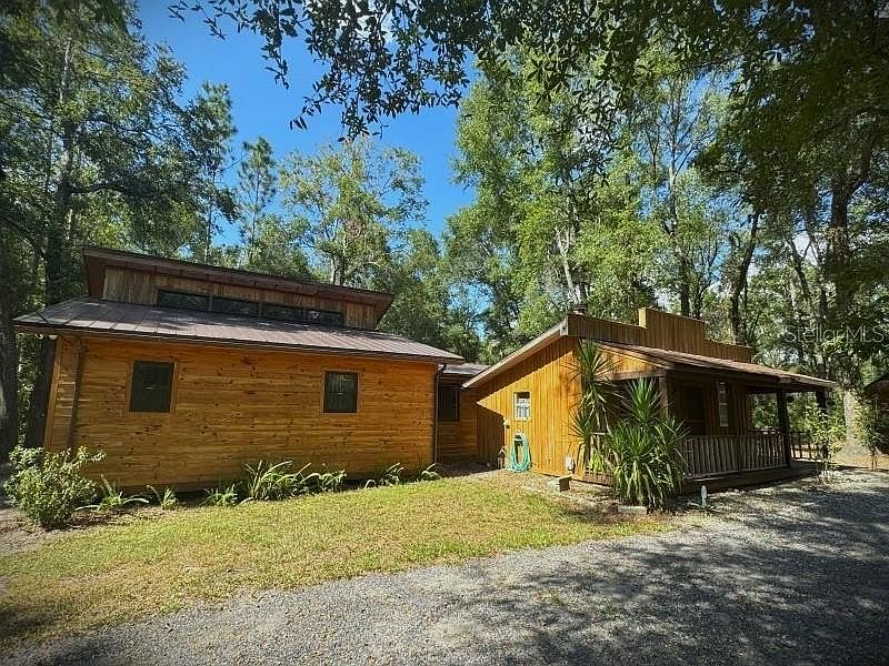 Opportunity knocks in Three Rivers Estates. This custom home with its ancillary buildings truly recreates the Old Florida lifestyle. Absolute peace and serenity can be found on this two and three-quarter acre homestead; NOT LOCATED IN A FLOOD ZONE. Only a short walk down to the Sante Fe River and community boat ramp. Enjoy quite evenings sitting next to the wood-burning fireplace or just “take it easy on Sunday morning” lounging in the large master suite. Long day? Relax and enjoy the supersized jacuzzi bathtub for two! Have guests or a need for a separate home office? The detached bunkhouse with a full bath can certainly accommodate. Need a workshop, additional storage, or entertainment space? The barn provides a wide-open area and spacious loft. There even is a built-in stage ready for a live band. Want more options? Build a second home or perhaps a third ancillary building on the additional parcel. Or simply hold and sell in the future. If you are seeking a change of pace from the daily norm, you should call and schedule a preview of this property before it is gone.