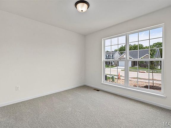 New McBride Homes Aspen II 3BR, 2BA ranch floorplan, ready this winter! Enjoy an open floorplan w/vaulted ceilings, 6’ windows, & beautiful wood laminate flooring in main living areas. The kitchen has a large island w/ breakfast bar, level 4 Benton Painted White 42” cabinets, quartz countertops, stainless steel GE appliances, & large walkin pantry. The dining area has a sliding glass door that leads to a covered future deck area w/ceiling fan prewire. The primary suite has a large window, dual closets, & private bath w/double sinks & walkin shower. Other extras include main floor laundry, ceiling fan prewires, ¾ bath rough in at LL, upgraded lighting & plumbing fixtures, two panel interior doors, plus coachlight. Located in House Springs, this community features 263 homesites off Bear Creek Road, just east of Gravois Road and Carol Park Road. Enjoy peace of mind with McBride Homes’ 10 year builders warranty & incredible customer service! Similar photos shown.