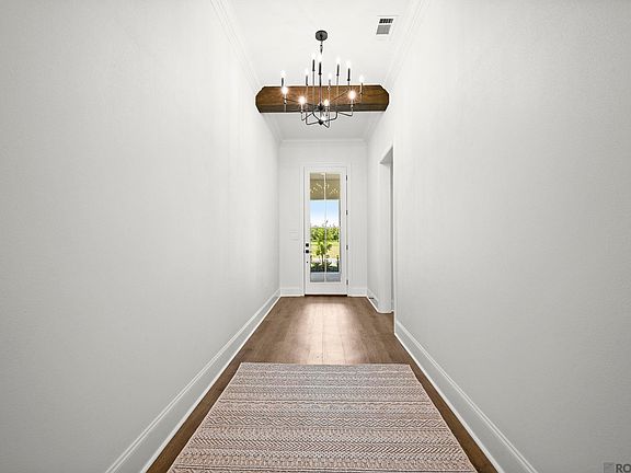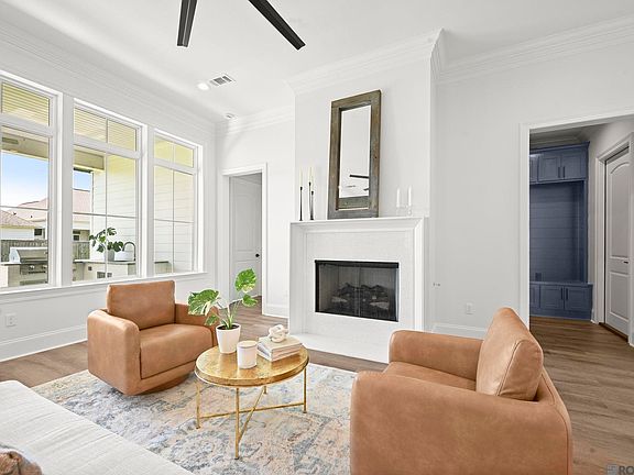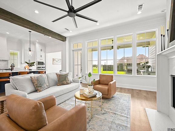 Minutes from LSU, this gorgeous new Chenevert Homes build in Chaval Point blends high-end style with everyday comfort. Soaring 11’ ceilings, cypress beams, crown molding, and a ventless fireplace set the tone for the open living space filled with natural light. The chef’s kitchen wows with quartz countertops, white soft-close cabinets, tile backsplash, pot filler, stainless appliances, gas stove, and a large island. The spa-like master suite features a free-standing tub, oversized tiled shower with seamless glass, double vanity, and a custom walk-in closet. Entertain outdoors with a covered patio, outdoor kitchen, and no carpet anywhere. RD 100% financing available and no flood insurance required.