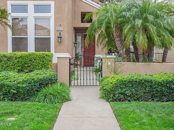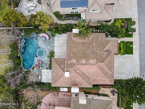 Welcome home! This freshly painted property is located in the very sought-after Verona neighborhood. The drive through to the neighborhood is welcoming while leading up to the home. As you enter this light and bright open 4 bed/3 bath floor plan home, you will be immediately amazed by the large formal living room with fireplace and formal dining room with its beautiful, vaulted ceilings. Beautiful state of the art newly installed Italian porcelain flooring and upgraded iron circular staircase. Recessed lighting throughout. Gourmet kitchen offers upgraded cabinetry, granite countertops, attached center island, kitchen dining area & stainless-steel appliances. Open to the Kitchen the Spacious family room with another fireplace and picture windows throughout with serene, tropical backyard views. You will feel as if you are on a never-ending vacation in paradise. Downstairs en-suite bedroom with its own private bath can be used as either a guest room or office. Added doors give this downstairs bedroom its own privacy. Upstairs, lovely master bedroom that includes a ceiling fan, a large walk-in closet with built-ins and a welcoming fireplace. Master bath boasts newly upgraded floors, along with an upgraded dual sink vanity with matching upgraded mirrors. Soaking tub and a large stall shower with beautiful, newly installed glass doors. Spacious secondary bedrooms offer ceiling fans, closet organizers with beautifully attached upgraded Jack and Jill bathroom. Laundry room is located in the garage with direct access to the 3-car garage. Prepare to entertain often in this backyard! Dual covered patios with lush landscaping including tropical plants, flowers & trees, and a built-in BBQ with refrigerator. Stunning pool and jacuzzi with a newly built-in lush waterfall and waterslide. Low water maintenance with newly installed outdoor sprinkler system. The front yard is maintained by the HOA. The amenities include a community pool/spa, kids pool and clubhouse. Close proximity to award winning schools, and wonderful parks. Walking distance to Moorpark high School. There are beautiful bike and hiking trails nearby. Resort-style living! Welcome to the good life!