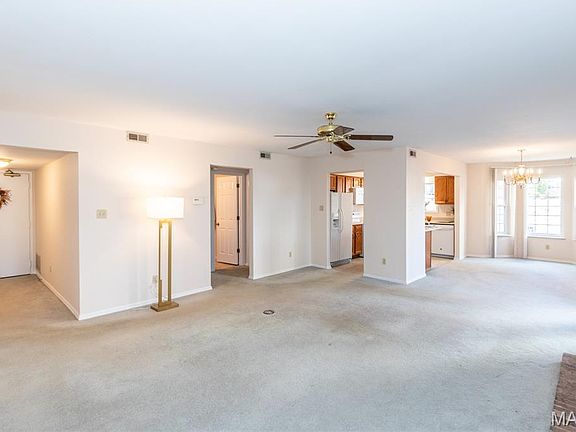 Showings beginning Saturday 15 November. Enjoy the convenience of whole house living in this sought after "ground floor condominium" which has just been professionally painted throughout! This beautifully maintained 2-bedroom, 2-bath condo lives large with nearly 1,400 square feet of open, airy space in a quiet 4-unit building! You'll love the spacious living room with a woodburning fireplace, loads of natural light, and access via French Doors to your privately owned patio perfect for your morning cup of coffee. The kitchen offers style and function with loads of cabinet space, pantry, stone countertops, white appliances and a breakfast bar that opens to the bay-windowed dining area. The oversized primary suite features dual closets, a bay window, and a private bath, while the second bedroom and full hall bath are great for guests or a home office. Extras include main-floor laundry room, a one car garage with storage shelves and direct interior access, secure building entry with intercom, and new roof in 2023. The association fee includes water, sewer, trash, and access to the community pool—just steps away. All of this in a convenient location close to shopping, dining, Grants Trail and easy highway access. It’s the best of both worlds—space and convenience with zero exterior maintenance! St. Louis Occupancy Inspection completed. Pets allowed. Refrigerator, Washer and Dryer to remain. Welcome Home!
