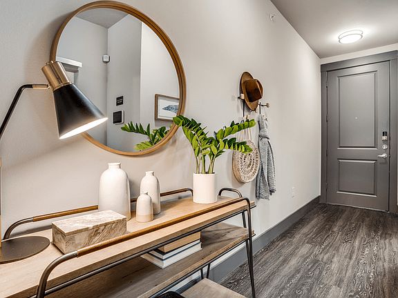 - Exterior features: Barbecue, Business Center, Direct access & detached garages available, Fire pit, Granite countertops, High Ceilings, On-Site Maintenance, On-Site Management, Package Receiving, Soaking tubs, Spacious shower, Stainless steel appliances, TV Lounge, Undermount sinks, Wood-style flooring, Yards available with select apartments