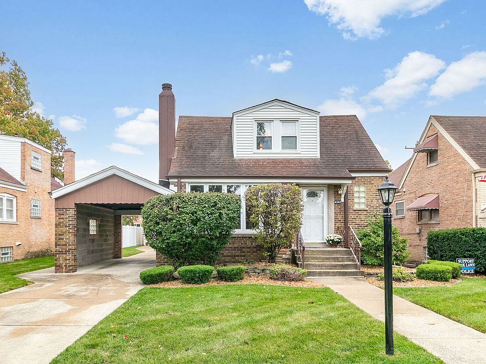 Beautifully maintained 4 bedroom, 2 bath brick Cape Cod nestled in Oak Lawn's highly sought-after southeast neighborhood, showcasing timeless character and picture-perfect curb appeal! Pride of ownership shines throughout this charming home. Step inside to a bright and inviting living room featuring a large front window that fills the space with natural sunlight. The eat-in kitchen offers plenty of room for dining and includes a spacious pantry, perfect for everyday convenience and storage. The main level features two bedrooms and a full bath, providing the ease of main level living and flexible space for guests, a home office, or playroom. Upstairs, you'll find a spacious primary bedroom with a walk-in closet and built-in drawers for extra storage, along with a generously sized second bedroom and a shared full bathroom. The finished basement adds to the home's appeal with a cozy family room, fireplace, and bar area, perfect for entertaining. Plus, a laundry room and additional storage space. Outside, enjoy an expansive, well-manicured fenced yard, a 2.5-car garage, and an attached brick carport that provides convenient, covered parking right off the side entrance. Recent updates include fresh paint, new carpet, and newer HVAC systems-new furnace (2021) and new AC (2022), plus new gutters and fascia (2024) and newer exterior doors. Located just steps from Lawn Manor Park, near top-rated schools, and minutes from shopping and dining at Stoney Creek Promenade, this well-loved home is ready for its next owners to enjoy!