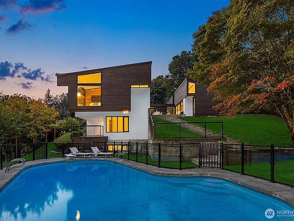 Stunning sound & Olympic Mountain views meet bold mid-century design in this unforgettable in-city retreat. Centered around 2 iconic courtyards, blending indoor-outdoor living w/ floor-to-ceiling glass that opens the space to sun, views & lush greenery. Entertain in a view-filled kitchen that flows into open dining+living spaces. Natural materials shine; cedar walls, shoji screens,oak floors & custom trim throughout. 5 bedrooms offer ultimate flexibility. Western sun exposure & year-round green corridors frame the protected views. Privacy, style & nature, just minutes to downtown. Slip into your pool in a serene private setting. A rare mid-century that truly hits different in the heart of Magnolia. Recently featured in Sunset Magazine.
