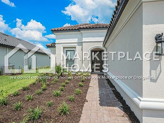 Light and bright waterfront home ready for move-in! Offering a flowing open floorplan with neutral finishes and gorgeous wood-look tile flooring, this is the blank slate you have been searching for to quickly become your new home sweet home. The spacious eat-in kitchen is fully equipped with sleek stone countertops, stainless steel appliances, and an oversized island with sightlines into the living room so your home chef never has to miss a moment. Easily extend your living space outdoors to the large, covered patio with serene water views perfect for living or dining al fresco! The primary bedroom boasts an elegant tray ceiling, bay window, walk-in closet, and luxurious en-suite bathroom with everything you need to relax and recharge after a long day. Private bathrooms in both the secondary bedrooms guarantee that every member of the household can live comfortably. Don't miss your chance to call this newer built home your own, schedule a showing today! HOA application fee of $100 with a 55+ age restriction in place. No pets.