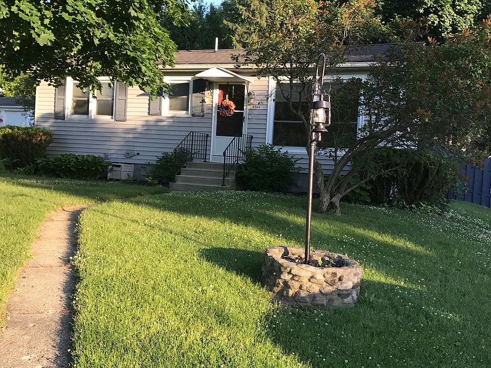Well maintained home with 3 bedrooms, 1 full bath, hardwood floors, solid surface counters, updated bathroom, roof about 13 yrs, large back yard, patio, one and a half car detached garage with bump out for work space, A/C, generator, public water, walk in closet with vanity sink, appliances included (almost new gas stove). Great location, close to the college, shopping and the expressway. Just outside of the village so no village taxes. Owner is putting new flooring or carpet in the master bedroom before closing.