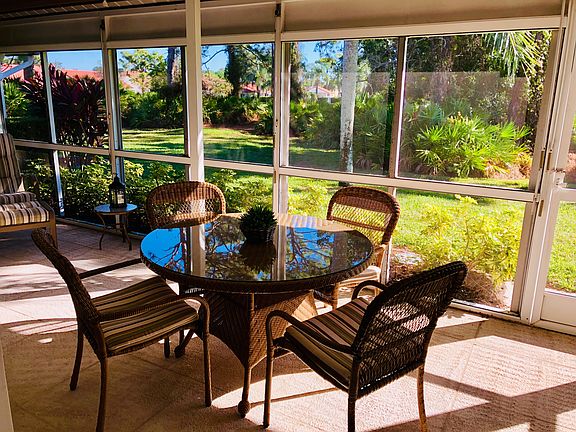 This beautifully updated home in the much sought after Southwood community is loaded with upgrades: gorgeous wood cabinets and granite countertops in kitchen and bathrooms, stainless appliances, large 20 inch tiles on the diagonal,newer carpeted bedrooms, front load washer/dryer on pedestals and newly painted throughout. New tile roof 2009, A/C replaced 2012 and hurricane protection all around. Electric avg. $70.,taxes est. $2393. Homeowners insurance est. $2200. Most furniture is available under separate contract. Please contact Bill/Linda 585-355-0315 for a showing. Buyer Agent is acceptable.