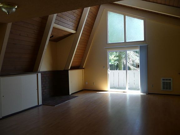 This spacious & beautiful chalet style 2 bed/1 bath duplex comes with kitchen appliances (refrigerator, dishwasher, stove/oven), dining area off kitchen, large living room, spacious multi purpose room downstairs, balcony leading to a side yard and 1 car attached garage for extra storage. Full size washer & dryer. Small pets under 20 lbs upon approval $400 deposit and $40 pet rent, only 1 pet allowed No smoking