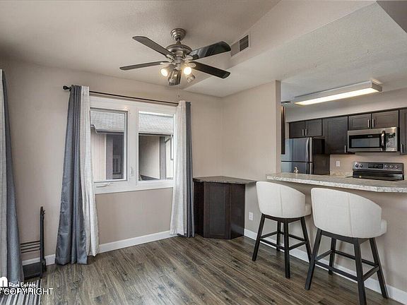Welcome to your new home! This top floor unit is move-in ready and offers a host of modern upgrades and amenities that cater to comfort and convenience.The kitchen has been beautifully updated with newer cabinets, sleek stainless steel appliances add a touch of elegance and functionality. The upgraded flooring throughout the unit enhances the overall aesthetic and provides a durable surfacefor daily living. One of the standout features of this unit is the tuck-under heated parking space. Say goodbye to scraping ice off your car in the winter! Additionally, a small storage unit is included, perfect for storing seasonal items or outdoor gear. And its located near Lake Hood and Anchorage International Airport. Triple-pane windows ensure that the unit is surprisingly quiet. You can enjoy peace and tranquility in your living space.