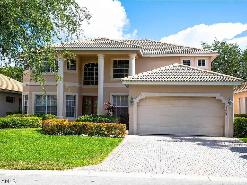 Amazing Value for this Gorgeous Custom built 2 story home with 4 large bedrooms 3 baths plus a large den or media room, large loft as well, with 3500 sq. ft. under air. This home shows very well, Features include: Large gourmet kitchen with stainless appliances, granite counter tops, tumbled marble back splash. There is a one bedroom suite downstairs and pool bath. Master suite has wood-like flooring with a private balcony and lighted tray ceiling. Heated pool and spa with 2 story pool cage . This home offers plantation shutters and crown molding, formal dining room and large family room. Longshore Lake is a premier North Naples Gated community with 88 acres of lakes for boating ,fishing and kayaking, Clubhouse with restaurant and pub, 9 hard court tennis courts with full time pro, heated pool, fitness and playground.