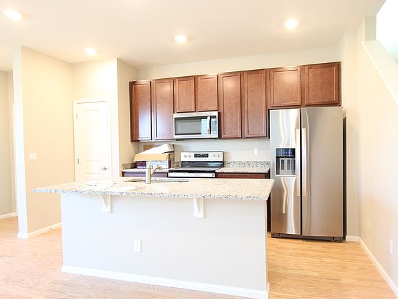 Newer and in a fantastic neighborhood. This Home has never been lived in and features hardwood floors, granite kitchen counters, and stainless steel appliances in the Cherry Creek School District. Enjoy the convenience of 2 separate living room areas, a 2 car garage, a side brick patio area. Fantastic Community in close proximity to shopping, Starbucks, community water park. Main suite has walk in closet, finished basement with additional living room area and bedroom suite. This home shares one common wall. Minimum credit score 565. Good landlord references are necessary.
