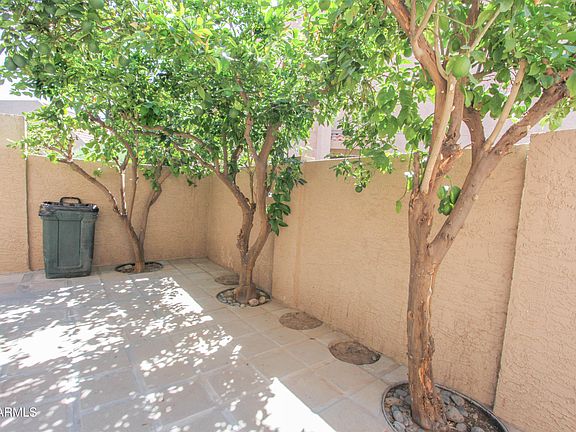 Clean and move-in ready townhouse featuring a loft and vaulted ceilings. The home includes all new appliances, upgraded light fixtures, and fresh interior paint. Enjoy the epoxy-coated garage floor, built-in garage cabinets, and newer sunscreens for added storage and efficiency. Relax on the cozy patio surrounded by mature fruit trees. Located in a quiet, family-friendly community with surveillance cameras for added security. RV parking is available for residents.