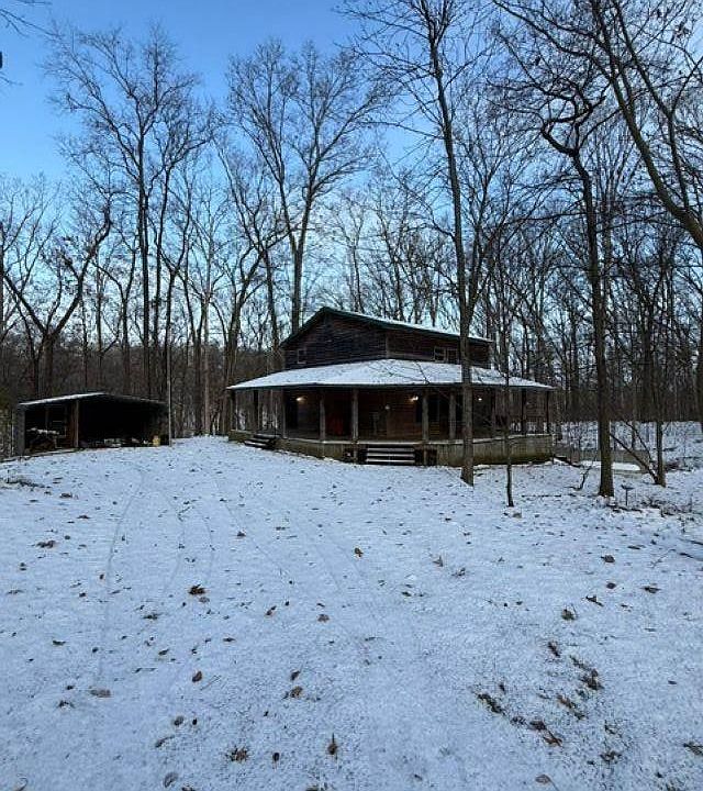 Charming Cabin on just under 2.5 Acres – 2 Bedroom, 2.5 Bath with Walkout Basement. Nestled quietly among mature trees, this log-sided cabin offers the perfect blend of rustic warmth and modern comfort. Located just minutes from St. Mary’s of the Woods College, the home sits on serene acres and features a metal roof, inviting open-concept kitchen and living room with bar and wood floors throughout. The upper level includes two spacious bedrooms, with generous walk-in closet, along with 2.5 bathrooms. The walkout basement, complete with a full bathroom, provides excellent potential for an additional living area, guest suite, or recreation space. Inside, you’ll find custom cabinetry, multiple heating options, and a cozy freestanding ventless fireplace that enhances the home’s warm, wooded character. A detached carport adds convenience and functionality to this peaceful, nature-embraced property. Bring your touch and make this place your peaceful spot to call home.