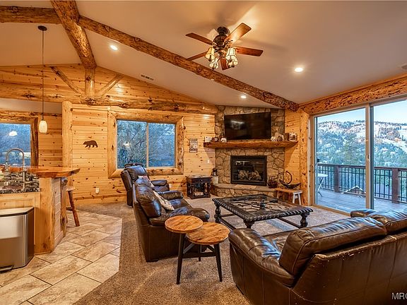 Unrivaled ski slope views from this turnkey 3,539 Sq Ft of interior space boasting 6 bedrooms and a theater room! Knotty cedar siding and log accents, this majestic luxury lodge abounds in quality craftsmanship and rustic mountain elegance. Amenities include game room, 10-seat private home theater, back deck with hot tub and BBQ, concrete driveway, 440 Sq Ft 2 car garage, laundry room, and extensive decking to enjoy some of the most iconic views in Big Bear. Well-appointed chef's kitchen features granite slab counters, custom cabinets, a large island, top-of-the-line appliances, luxury finishes, and attached formal dining. Spectacular great room offers vaulted ceilings, large wood beams, and beautiful floor to ceiling stone fireplace. Established as a vacation rental in November 2020, revenue documentation available.