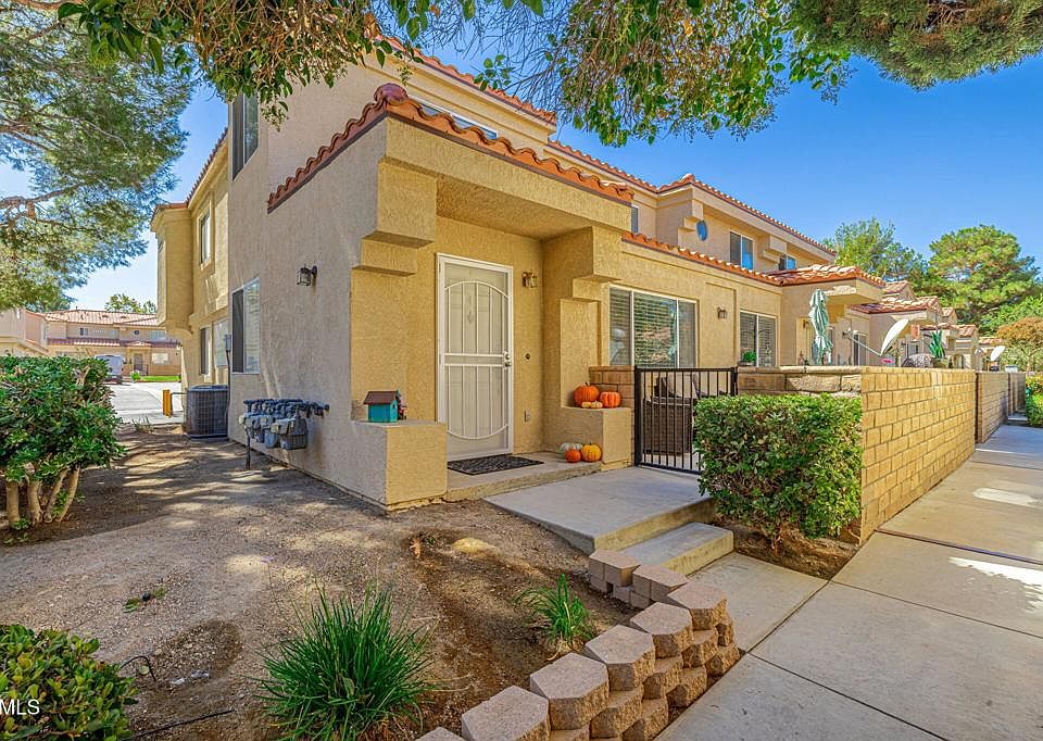Welcome to the highly desirable gated community of Marbella Villa Townhomes, where comfort and convenience meet! This beautiful end-unit condo offers 3 bedrooms and 2.5 bathrooms, including a spacious master suite with a private retreat/office space, his and her closets, and a stunningly upgraded bathroom with an oversized shower. The open and inviting floor plan features a family room with a cozy fireplace, tile flooring, a stylish kitchen with granite countertops, stainless steel appliances, and a charming garden window. All bedrooms are located upstairs, with upgraded bathrooms and modern touches throughout. Enjoy a private front patio, direct access 2-car garage plus guest parking, and a prime location within the community. Marbella Villas also offers resort-style amenities including a sparkling pool & spa, fitness center, tennis courts, recreation room, and HOA coverage for water, trash, roof, and stucco maintenance. Ideally located near AV College and just minutes from the freeway, this is Lancaster living at its best!