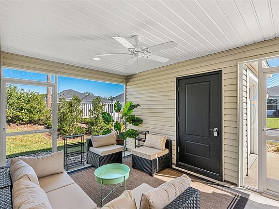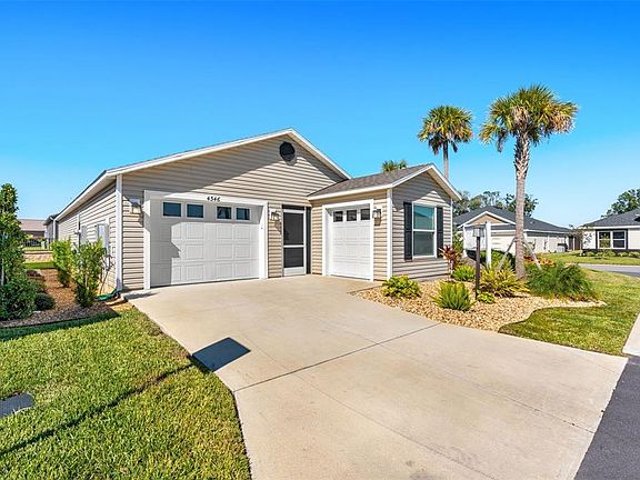 Life in The Villages is all about ease, connection, and enjoying every sun-filled day. This beautifully maintained 2022 Moonstone Patio Villa captures that spirit perfectly. Positioned on a lush corner lot in the sought-after Village of Richmond, this residence blends privacy, comfort, and access to every amenity imaginable. A 2022 refurbished Yamaha golf cart is included. Golf cart features include; gas, four seater seatbelts both front and back JBL speaker system, self counseling turn signals and a few other things. Step inside to discover a bright, open living space where high ceilings and a neutral palette create an inviting sense of calm. The kitchen’s generous island and solar tube lighting make it the perfect spot for morning coffee or casual conversation, while the living and dining areas flow seamlessly to the outdoor patio. The primary suite is a peaceful retreat with a ceiling fan, high ceilings, a walk-in closet, and an en suite bathroom. A second bedroom and full bath ensure comfort for guests. Additional highlights include luxury vinyl flooring, ceiling fans throughout, and two attached garages, one for a car and another for a dedicated golf cart space. From your doorstep, a short golf cart ride leads to Brownwood Paddock Square, Okahumpka Recreation Center, Richmond Pitch & Putt, Water Lily Bridge, and the scenic Hogeye Preserve. Brownwood, a lively county town full of charm and energy, where beautifully manicured neighborhoods surround pristine golf courses, sparkling lakes, and vibrant town squares that serve as the hub of shopping, dining, and nightlife. Explore a variety of restaurants, boutique shops, and local entertainment, all within minutes of home. The Villages offers over 100 recreation centers featuring swimming pools, hot tubs, tennis and pickleball courts, and countless opportunities to stay active and social. Turnkey and thoughtfully landscaped for low maintenance, this home makes it effortless to start living The Villages lifestyle, where every day feels like a getaway.