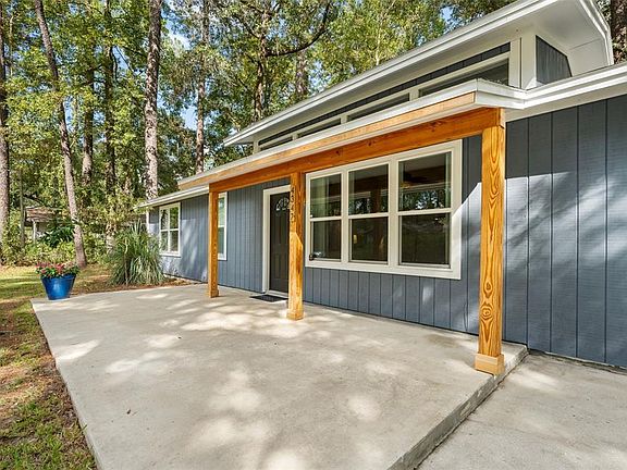 Come see this exceptionally well-maintained and thoughtfully updated 3-bedroom, 2-bath home tucked away in this scenic, serene NW Gainesville neighborhood with no HOA. Enjoy the best of both worlds — tranquil surroundings and easy access to local conveniences like the Shoppes at Thornebrook, Publix & Fresh Market, Petsmart, Gainesville Health & Fitness, I-75, and the University of Florida less than 5 miles away. Inside, you’ll find a bright, open layout filled with character and warmth including vaulted, cathedral ceilings in the main living room and a gorgeous wood ceiling feature in the kitchen/dining area. The newly updated kitchen is a true highlight — featuring a beautiful, brand-new GE gas range, brand new built-in Samsung microwave, and brand new, large Vissani stainless steel refrigerator. Additionally, a deep farmhouse-style, stainless steel sink sits perfectly beneath the kitchen window, inviting in natural light and a gentle backyard breeze. Down the hallway, the primary bedroom offers a peaceful retreat featuring brand-new carpet, a private en-suite bathroom and a large walk-in closet. The second spacious bedroom also includes new carpet and welcomes an abundance of natural light, creating a warm and inviting space. The third bedroom is conveniently located off the charming laundry room (washer and dryer included!) and currently serves as a cozy art studio, but designed with flexibility in mind — easily transforming into a home office, gym, playroom, or any creative retreat. The custom birch wood built-ins add warmth and sophistication while offering smart, functional storage. Step outside the french doors to enjoy a spacious backyard surrounded by mature trees and full privacy fencing. Relax or entertain on the paver patio or take advantage of the picture perfect matching shed, complete with extra storage space and electricity — ideal for a workshop, studio, or garden shed. Additional upgrades include new exterior paint and new front-of-home siding and windows, enhancing both curb appeal and energy efficiency. The home also features a tankless hot water heater for comfort and convenience as well as Cox high speed internet. This home blends modern updates with timeless charm in one of Gainesville’s most desirable areas. Come experience the perfect mix of comfort, craftsmanship, and tranquility.