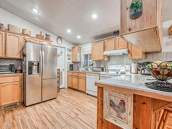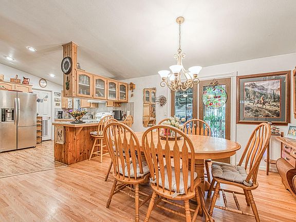 Welcome to your eclectic bohemian style private 1.21-acre retreat where indoor and outdoor living blend seamlessly. This charming 3-bedroom, 2-bathroom manufactured home on a foundation built in 2003 showcases the relaxed elegance of mountain living with spaces designed for both everyday comfort and memorable entertaining.The spectacular wraparound porch is the heart of this property a generous, covered extension that invites you to enjoy the fresh mountain air year-round. Whether you're sipping morning coffee as sunlight filters through the leaves, working remotely with nature as your backdrop, or hosting intimate evening gatherings, this versatile space adapts to your lifestyle. The thoughtful timber-and-metal construction provides shelter from the elements while providing a view to the wooded outdoors.Step into the expansive back patio area and discover your new favorite gathering spot. Nestled among mature trees, this spacious outdoor room is perfect for summer barbecues, starlit dinners, or quiet afternoons with a good book. The covered section creates a cozy, protected hangout area that extends your living space well beyond the home's walls. Imagine entertaining friends and family in this picturesque setting with room for everyone to spread out and relax.Inside, you'll find a welcoming kitchen that balances character with functionality, updated appliances, ample counter space, and thoughtful storage beneath warm wood cabinetry. The antique wood stove adds authentic mountain ambiance and supplemental heat on chilly evenings. Throughout the home, unique architectural details and creative touches reflect a one-of-a-kind personality.The thoughtfully landscaped grounds feature established garden beds, artistic plantings, and charming outdoor seating areas tucked throughout. Lush greenery, mature trees, and creative hardscaping create multiple inviting spots to unwind. This is a property that's been loved and cultivated with care.With over an acre of wooded privacy and access to community amenities and a converted storage unit with kitchenette and an unfinished bathroom for potential ADU completion, this property offers the perfect balance of seclusion and convenience. This is more than a house, it's a lifestyle for those seeking authentic mountain living with room to breathe.