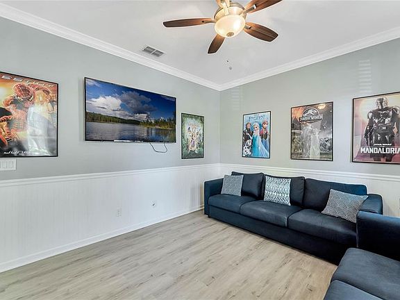 Welcome to 4348 Acorn Court, a stunning luxury home located in the highly desirable Solterra Resort. This spacious six-bedroom, five-bath property offers an exceptional blend of comfort, elegance, and entertainment, making it the perfect vacation retreat or investment opportunity. Designed with space in mind, the home features three beautifully furnished living areas two on the main floor and one upstairs providing plenty of room for relaxation and gathering. The fully equipped kitchen flows seamlessly into the open concept living and dining spaces, creating an inviting atmosphere for hosting family and friends. Outside, a private screened-in pool with optional heating offers the perfect place to unwind after a day at the parks. Themed bedrooms add a fun and memorable touch for guests of all ages, enhancing the home's appeal as a top-tier short-term rental. Located within Solterra Resort, residents and guests enjoy access to world-class amenities including a resort-style water park, clubhouse, fitness center, lazy river, and tennis courts. The community is just minutes from Orlando's famous attractions, dining, shopping, and championship golf courses. This beautifully appointed home is truly move-in or rental ready, offering luxury living in one of Davenport's most sought-after resort communities.