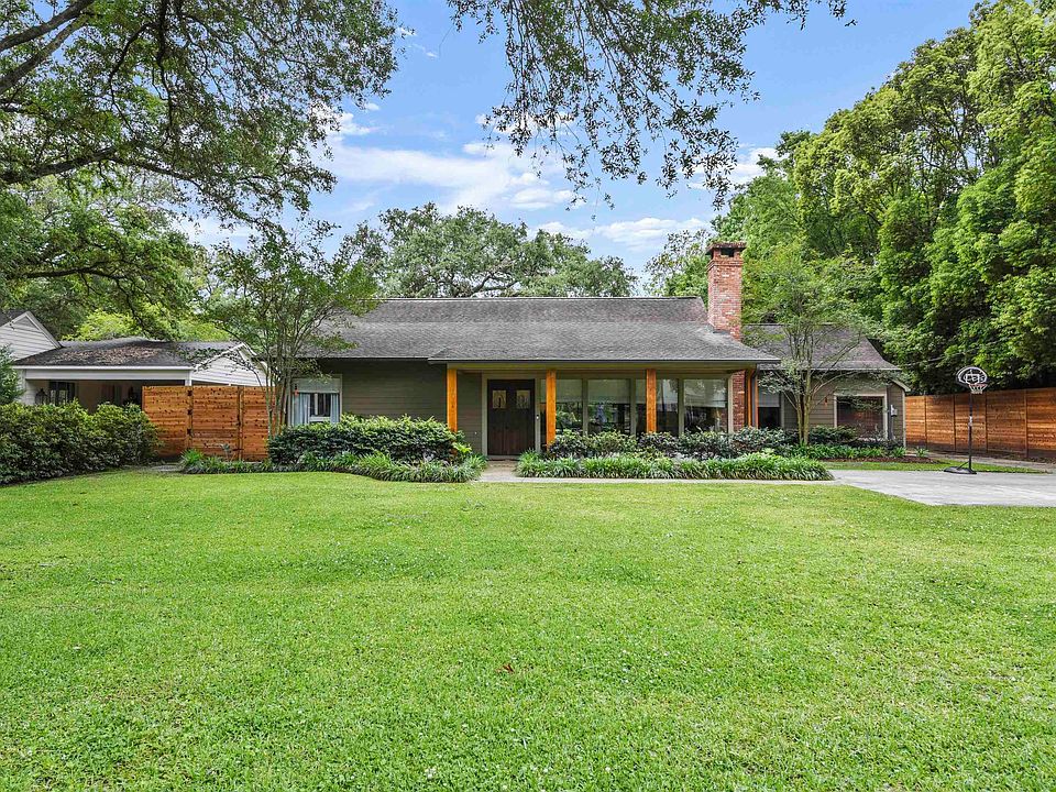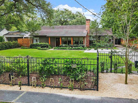 You will love this charming Mid-Century Modern 3 BR/3.5 BTH home on a huge 100 x 300 lot in the highly sought after Glenmore Place Subdivision on Claycut. The large living and dining room are open to each other, separated by pine columns and beams. The kitchen features a large island, soapstone counters, Wolf appliances, warming drawer, ice maker, Bosch dishwasher, sub zero refrigerator, and 2 large pantries. The large master bedroom has lots of natural light and a beautiful wood burning fireplace. The master bath has dual vanities, a free standing tub, frameless shower, and water closet. The other 2 bedrooms are very large and each have their own private baths with marble counters and custom closets. The office/sunroom was an addition done by A. Hays Town and boasts pecky cypress on walls, beamed ceiling, built in bookcases and window seat. The options are endless in the huge backyard! You will love relaxing in the large screened in patio. Other wonderful features are the sprinkler system for complete yard and beds, LED landscape lighting with up lighting in trees, completely fenced yard with remote and keypad entry at front gate for privacy and security, 12 x 20 detached storage shed, and lots of outside storage including one room with full bath. New exterior privacy fence added. Seller has plans that come with the home to add larger garage or "carriage house" with upstairs living quarter. Schedule your showing today!
