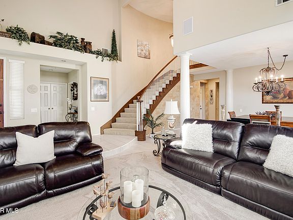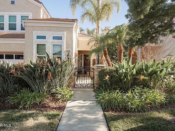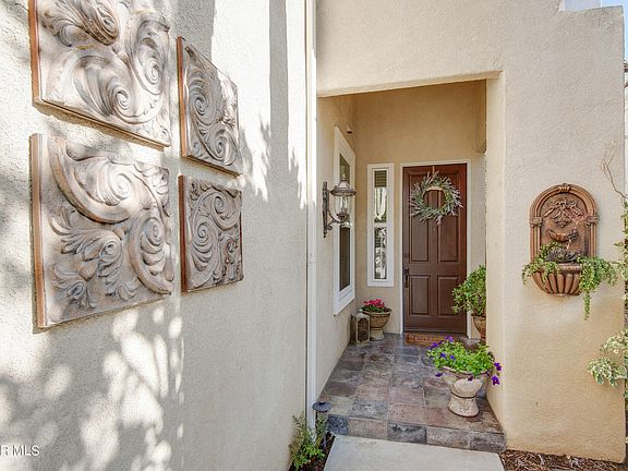 Magnificant Moorpark home located in the popular Verona development. This 4 bedroom, 3 bath property has an open and inviting entry. Large living room and dining room with bedroom and bath located downstairs. Updated and beautifully appointed kitchen featuring custom back splash and stainless appliances. The main bedroom upstairs has a separate lounging area and fireplace. The main bathroom offers dual sinks, separate soaking tub and shower with walk-in closet. Private and vibrant rear yard with built-in BBQ and island, fire pit, and fruit trees. 3 car garage. Community pool, spa, and club house. The HOA maintains the front yard. This remarkable residence of timeless appeal promises lasting enjoyment and enduring value for the fortunate new owners.