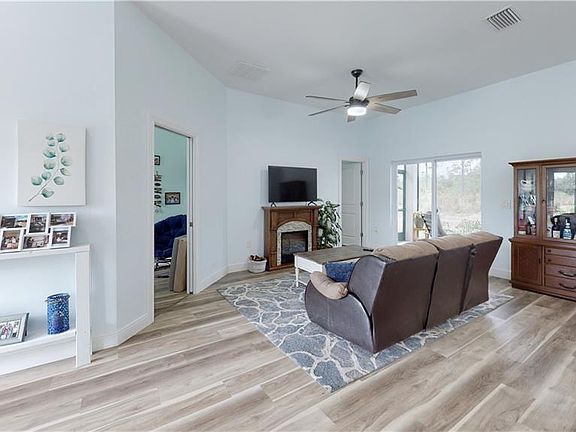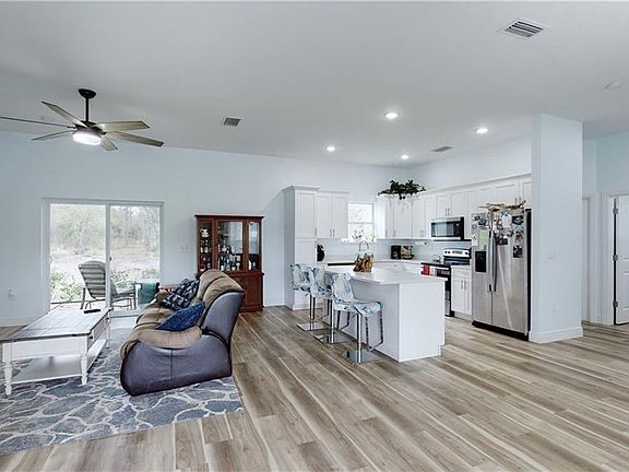 Escape to your own private sanctuary with this secluded open concept home built in 2021. Featuring 3 bedrooms, a den, 2 bathrooms, a 2 car garage, 10-foot ceilings and wood looking vinyl plank flooring throughout. Step outside to the panoramic screened lanai and take in the natural surroundings, where you can watch the local birds and deer in their natural habitat. The property also includes a paved driveway and a sprinkler system. Plus, with the included lot next door, you'll have 2.28 acres of land to call your own, providing even more privacy and the potential to build another home or you could sell the lot next door as it is on a separate deed.