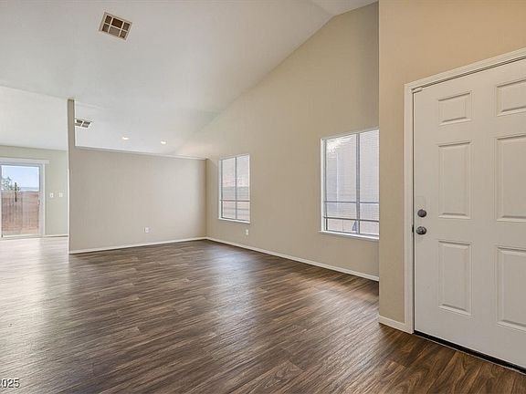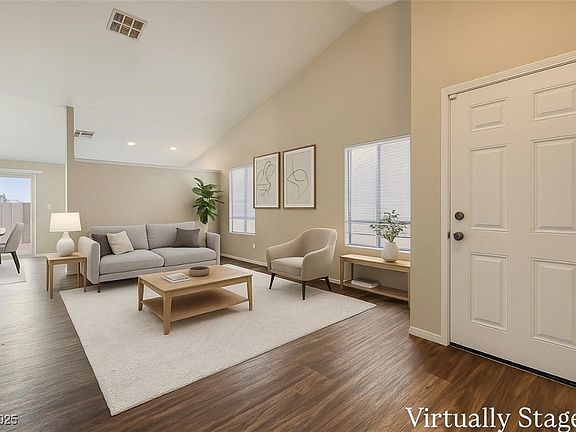 Beautifully maintained single story home with no HOA. Close to Nellis Air Force Base and the I-15. This home features 2 bedrooms and 2 full bathrooms. Backyard access from the primary bedroom with a sliding glass door that provides natural sunlight. Primary bedroom features a spacious walk in closet. Large backyard with no neighbors behind. Newer flooring and newer appliances all included!