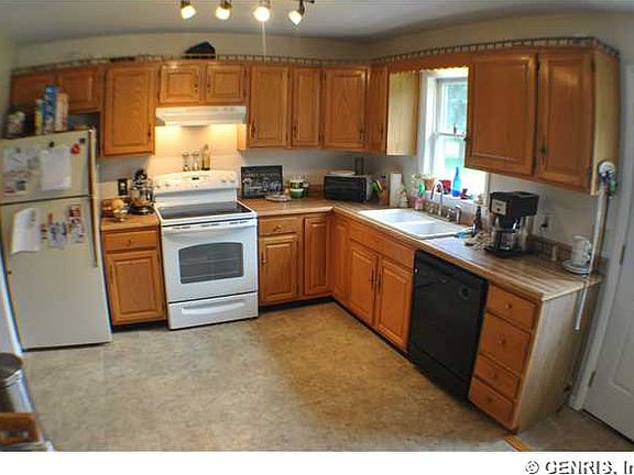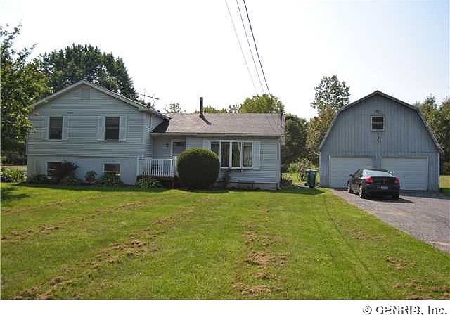 Charming countryside four level split loaded with upgrades and charm! This pristine home offers a honey oak kitchen with appliances,master suite with full bath and a finished lower 3rd level with familyroom, laundry and den/study. ANDERSEN thermopanes throughout. Posh freshly painted neutral decor,a two story gambrel roof barn/garage with full attic. Vinyl and stucco exterior,mature landscaping and a spacious rear yard that backs to woods makes this a real find. Avg. RG&E is only $141/month!