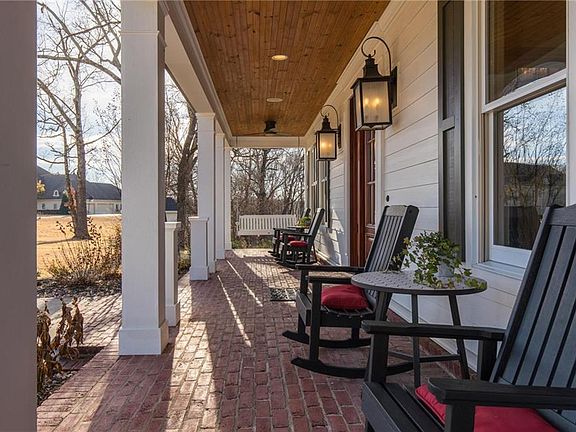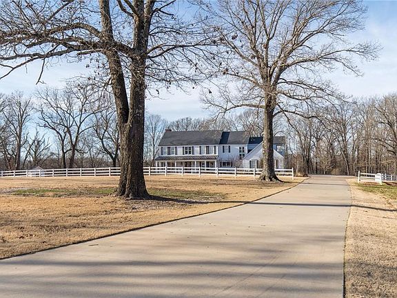 Beautiful estate home on 4.17 acres. Scenic paved drive through meadows surrounded by woods, cross bridge over Artesian spring, up small incline to the estate on large flat yard surrounded by natural wooded setting. Private location just few minutes to Hwy 72 & I-49. Only 3.5 miles Downtown Bentonville. Home updated throughout, upscale/magnificent, lots woodwork, extravagance/detail, yet comfortable with warm/inviting features; tall ceilings, wood floors/beams, 2 fireplaces, 2 staircases, lots built-ins, gourmet kitchen with magnificent island, stainless appliances: built-in refrigerator, gas range with griddle, microwave/convection oven combo, soap stone countertops. Home has 5 bedrooms, 4.5 baths, 2 living areas & study on main level; upstairs bonus room. 5th bedroom lower level has sink & microwave. Formal dining plus large breakfast area. 4 garage, large porch, huge deck, stone patio. Roof 2019. Hardie pre-painted exterior siding 2016. Two of the three HVACs replaced 2019. Septic tank recently inspected/pumped.
