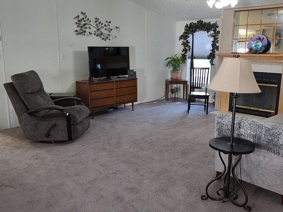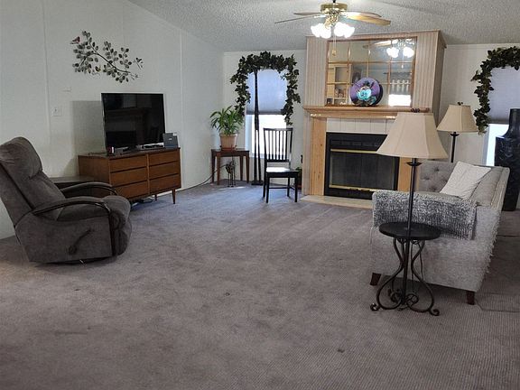 Spacious, well kept 3 bedroom double wide home with vaulted ceilings, in Midlands Village. Large open living room, split bedroom design, walk-in shower, walk-in closet, pantry, even a gas log fireplace to add some cozyness. All appliances included. This home has a newer roof, newer blinds, 2 covered porches, storage sheds. lots of cabinets and many with slide out drawers for easy access. Located in a culdasac. Lot fees cover lot rent, water, sewer, trash irrigation and maintainence of common areas. W.C. Mortgage has financing available. Motivated seller.