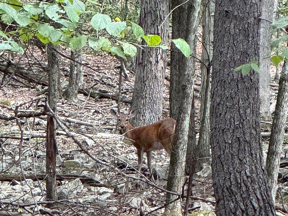 Mostly flat terrainSurrounded by treesQuiet cul-de-sacWooded lot