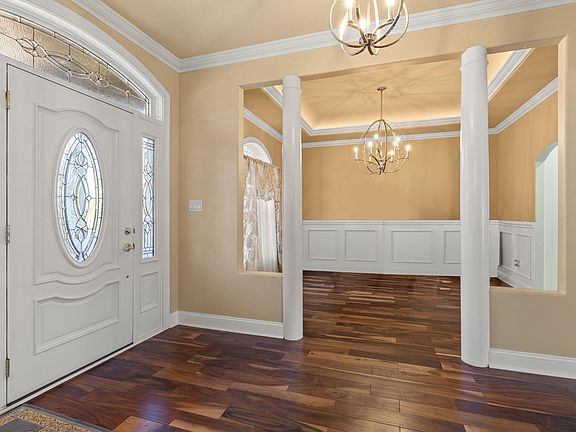 Welcome to your dream home in one of Madison County's most desirable gated communities - where everyday living feels like a retreat and golf course views are right outside your door! This home is set on a spacious 1.74-acre lot, giving you the perfect mix of privacy and community living. From the moment you arrive, the timeless curb appeal, mature landscaping, and inviting front entry set the tone for what's inside. Step through the front door and you're greeted by wide-open spaces, soaring ceilings, and abundant natural light. Every room in this home feels grand and welcoming, from the elegant dining area with wainscoting and wood floors to the oversized living room with a statement fireplace and large windows framing views of your property. The kitchen is a true showstopper—bright, spacious, and designed with both function and style in mind. Custom white cabinetry, granite countertops, tile backsplash, and stainless steel appliances (including double ovens!) make this a chef's dream. The breakfast nook offers a cozy spot to start your day. The primary suite is a private retreat, complete with a tray ceiling, spa-like ensuite bath, and an oversized walk-in closet. Unwind in your clawfoot soaking tub—this space was built for relaxation. Two additional generously sized bedrooms and a second full bath provide comfort and flexibility for family or guests. Out back, you'll find a beautiful patio overlooking the expansive yard—an ideal setting for morning coffee, evening gatherings, or simply soaking in the peace and quiet of your surroundings. With nearly two acres, you'll have plenty of room to entertain, garden, or simply enjoy the open space. Additional highlights include an oversized 3-car garage, perfect for vehicles, storage, and hobbies. And let's not forget—you're living in a gated golf course community, giving you both security and resort-style living just minutes from town. This isn't just a home—it's a lifestyle. Whether you're hosting friends, enjoying family time, or savoring the serenity of your surroundings, this property delivers it all.