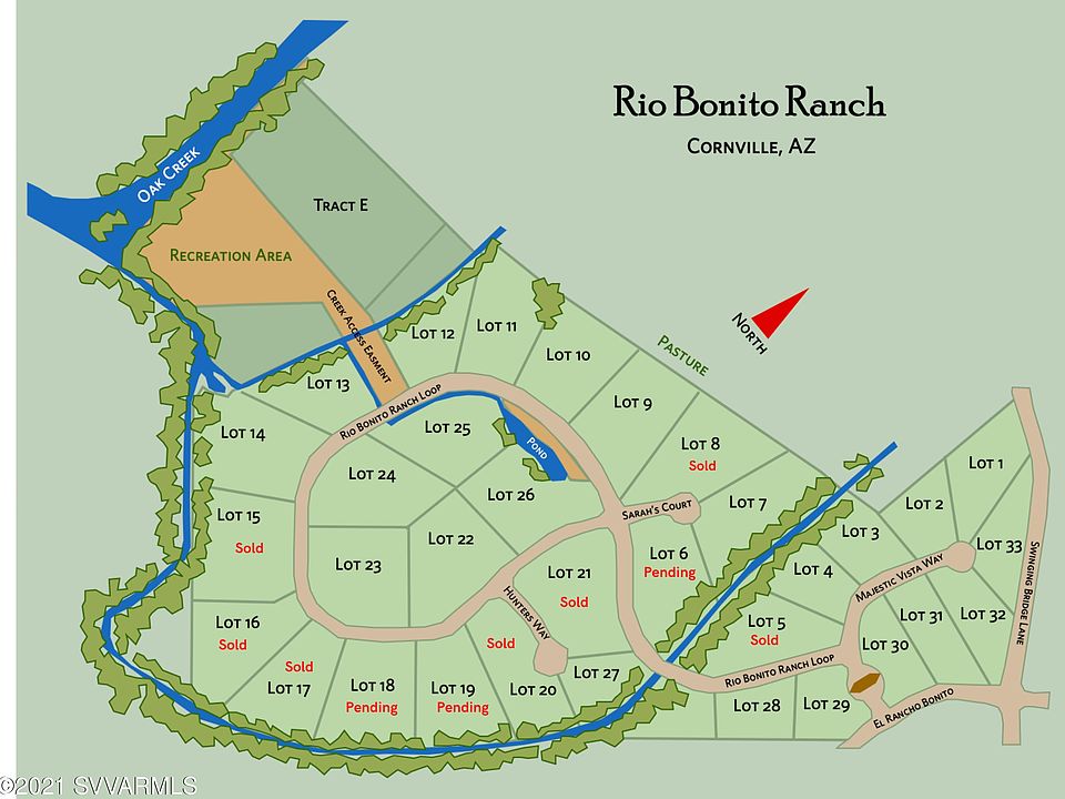 Center of the entire mid level of the subdivision are 5 parcels totaling approximately 10 acres & one side of the HOA managed pond (established for overflow drainage, source for fore suppression & water provision for our feathered friends & other local riparian critters like river otter, blue herons (seen daily) due to the small mouth bass residing there). Current irrigation provided by mechanical arm. HOA recreation area north of pond is grassy w/shade trees & may be accessed directly from the paved road. Current perimeter fencing is electric for the full circle with a stock tank at the center. This lot is directly across from the access road which leads to Oak Creek.