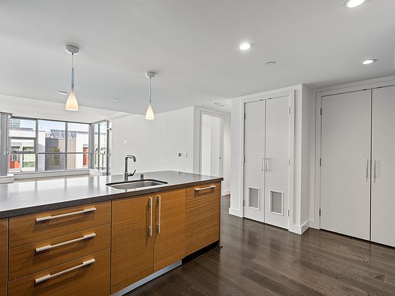 Luxury living at its finest! This spacious 2 bedroom, 2 bathroom at Madrone features wide-plank hardwood floors, floor-to-ceiling windows, and a private balcony off the living room. The modern kitchen offers sleek stainless steel Bosch appliances, Ceasarstone countertops, Italian-inspired cabinetry, and rare pantry closet. The master bedroom is spacious with ample closet space, and the luxurious en-suite bathroom has dual vanities and a tiled shower stall. A full-sized Whirlpool washer and dryer, central air conditioning, and 1 parking space is available for lease for an additional monthly fee. Building amenities include attended lobbies, heated outdoor pool, spa, sauna, BBQ/dining areas, state-of-the-art fitness center, theater, and community lounge/game room. Enjoy easy access to parks, public transit, highways, restaurants, and entertainment at the Chase Center and Oracle Park.